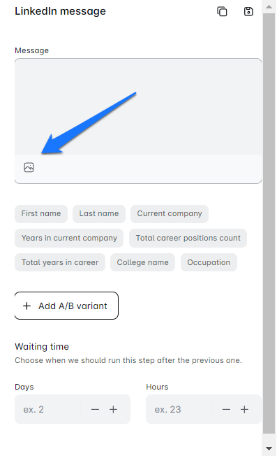- For email messages, choose where to insert your image or GIF. For LinkedIn messages and InMails, Leadfeedmedia will place your personalized images and GIFs at the bottom of the message.