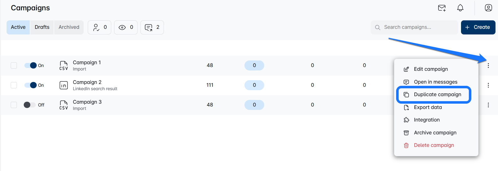 Launching a new campaign using steps from an existing one is simple! Duplicate your current campaign, add a unique name, and import leads via LinkedIn URL, CSV, or Sales Navigator Search. Be sure to update lead settings if needed. Enjoy creating campaigns! 🚀