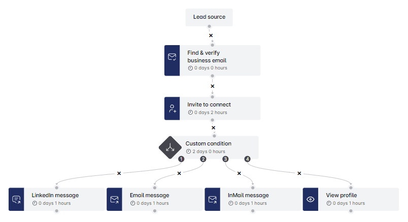You’ve just crafted a Custom Condition that covers all possible scenarios within your sequence. This feature lets you optimize your outreach and make the most out of the Leadfeedmedia. 🌟