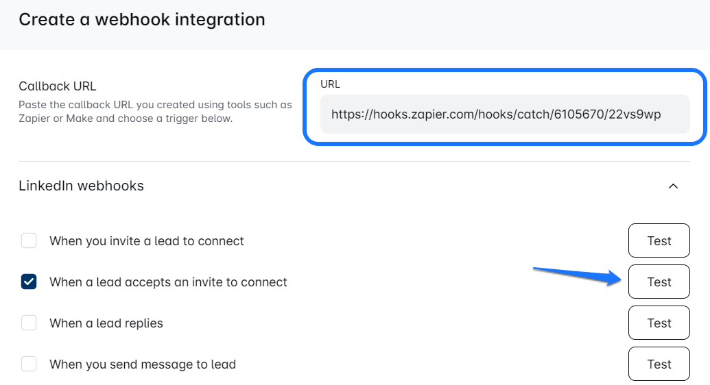 - Select the trigger event in the Leadfeedmedia, like “when a lead accepts an invite to connect.”